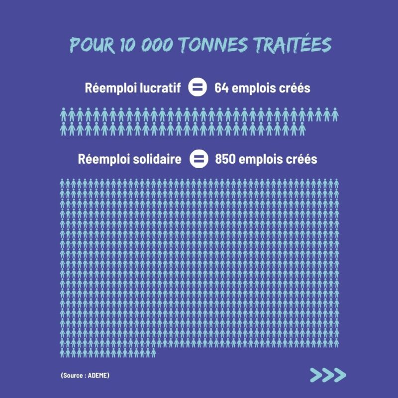 👉Avec le réemploi solidaire (qu’on pratique avec ❤️), on soutient un modèle porté par des associations qui valorise tous les objets, même les moins « rentables », crée de l’emploi local, vend à prix solidaire et réinvestit au service du bien commun.